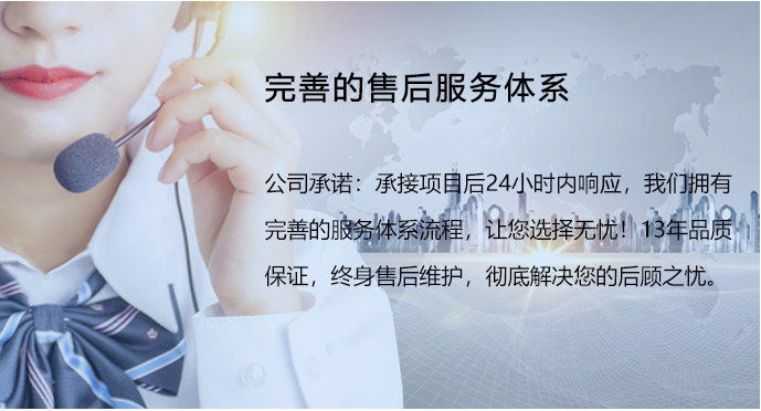 公司擁有完善的服務(wù)體系流程,讓您選擇無(wú) 憂(yōu)!13年品質(zhì)保證,終身維護(hù),徹底解決您 的后顧之憂(yōu)